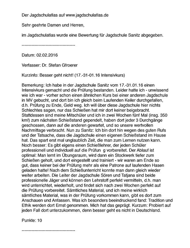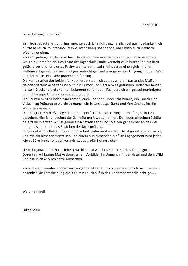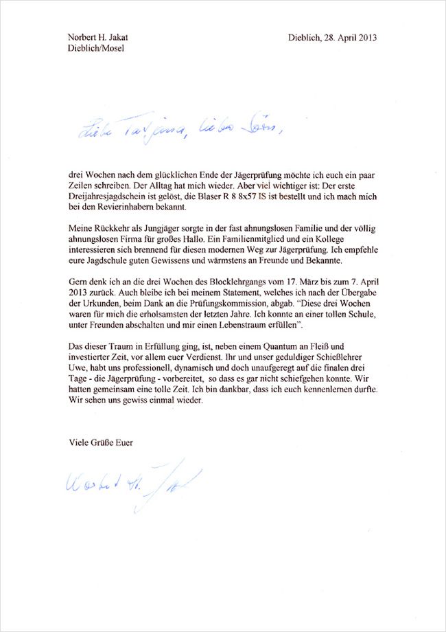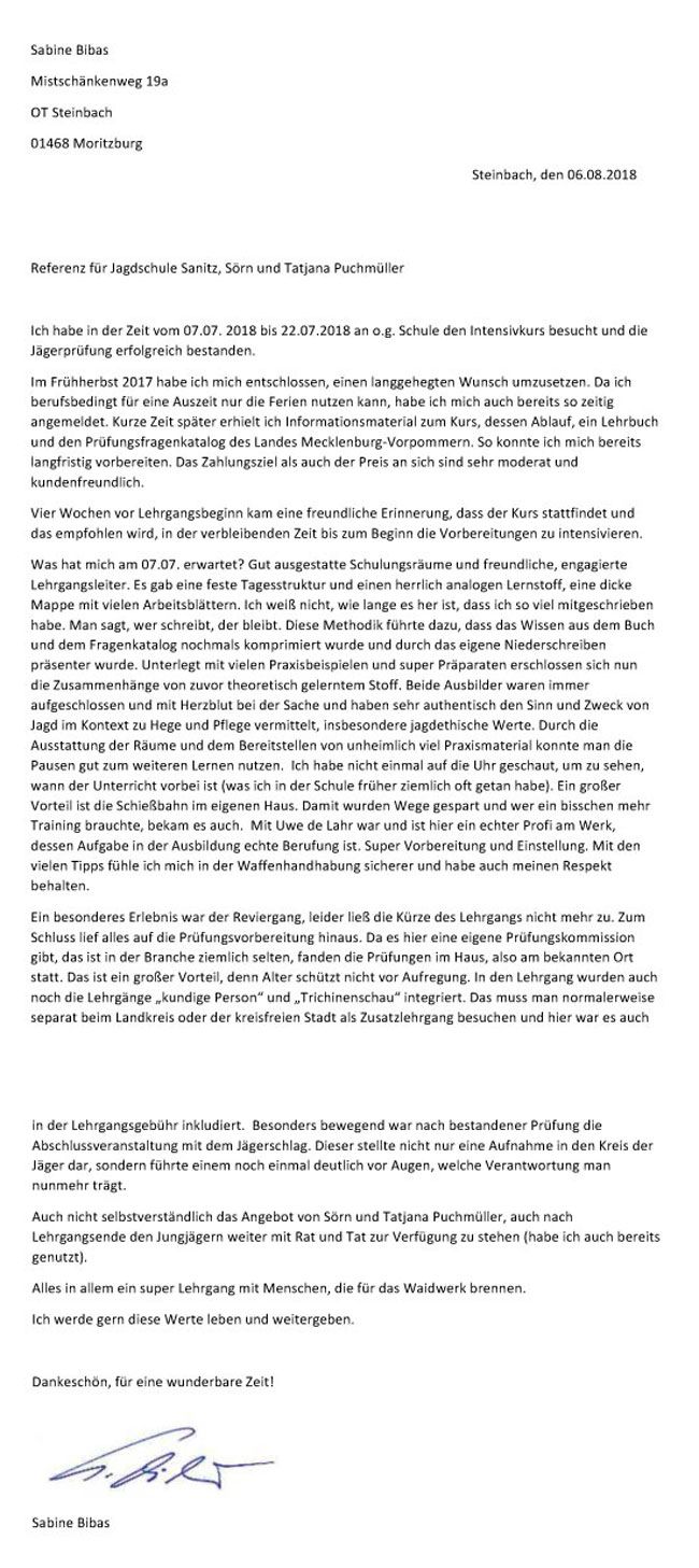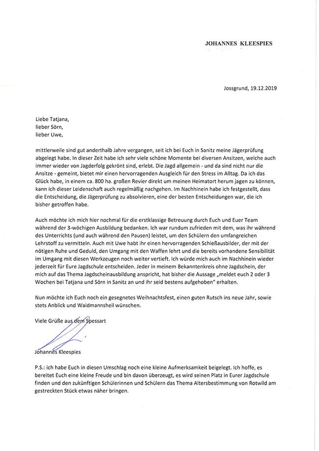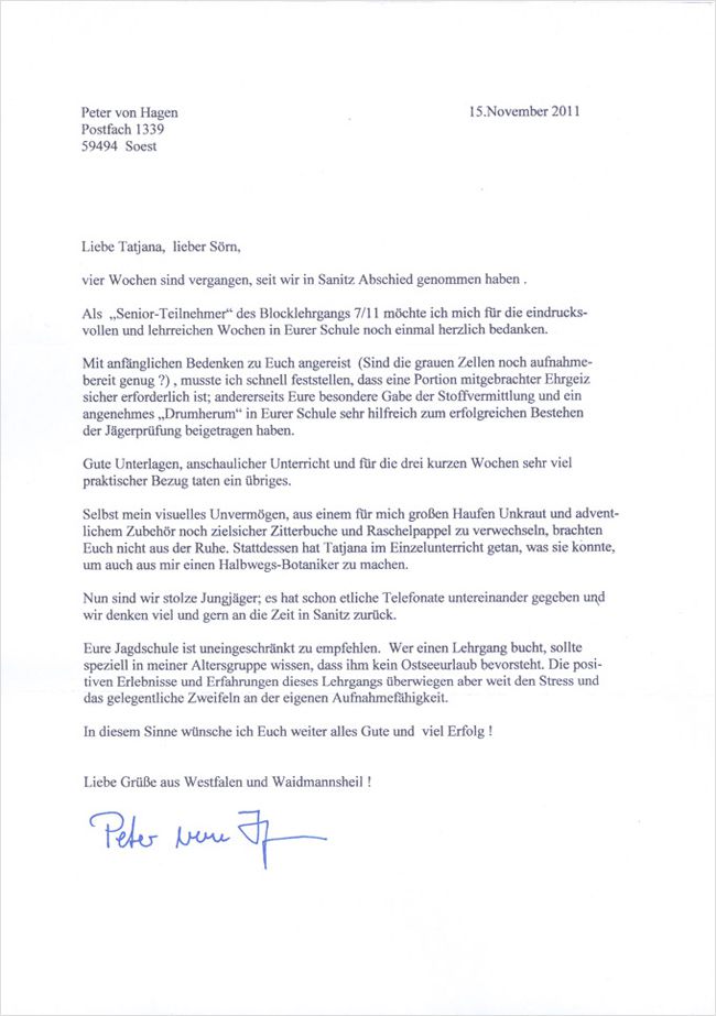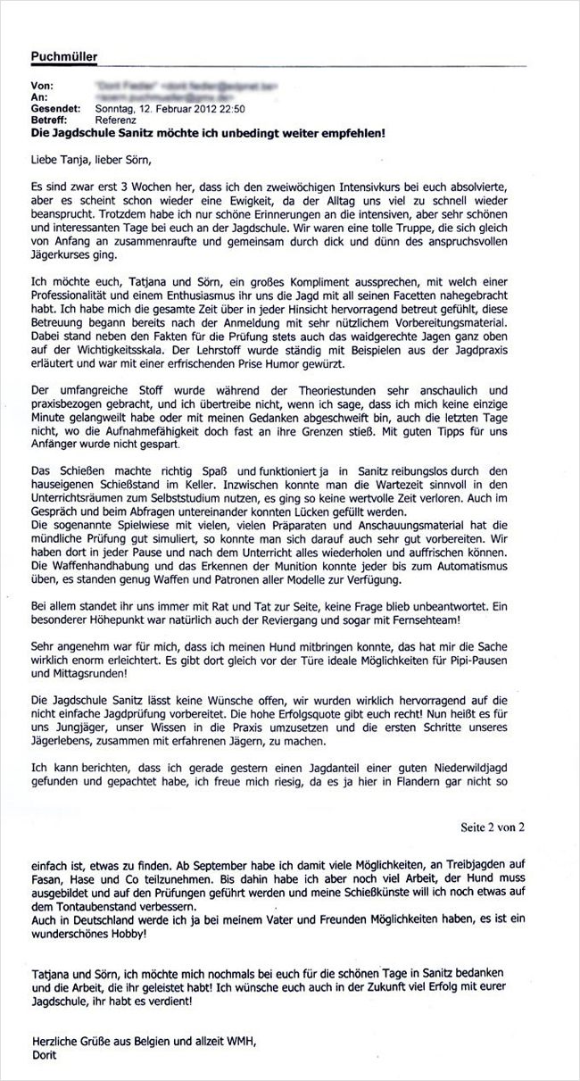 Referenzen der Jagdschüler