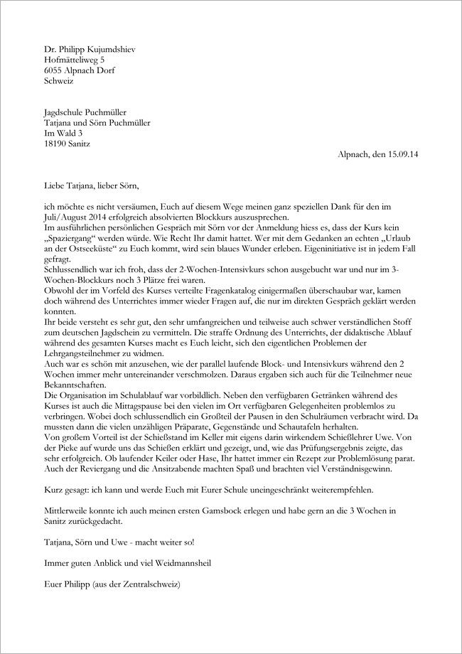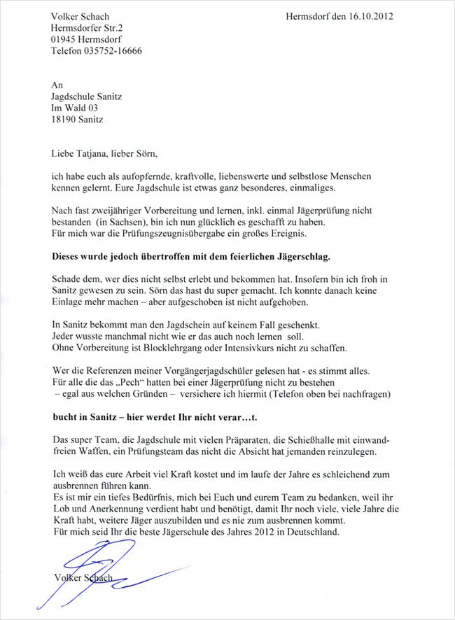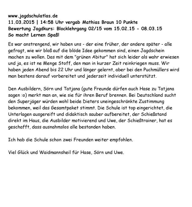 Referenzen der Jagdschüler